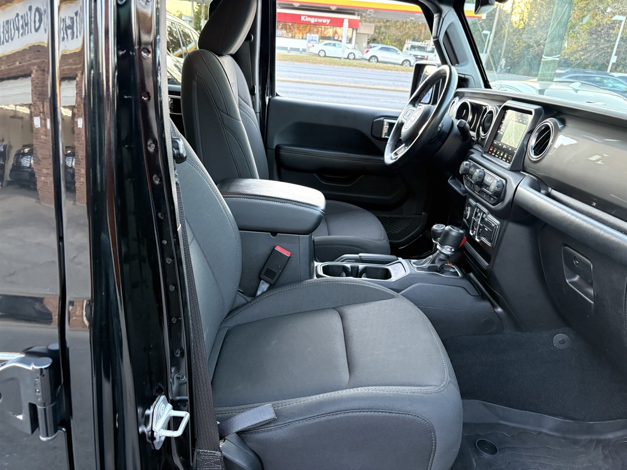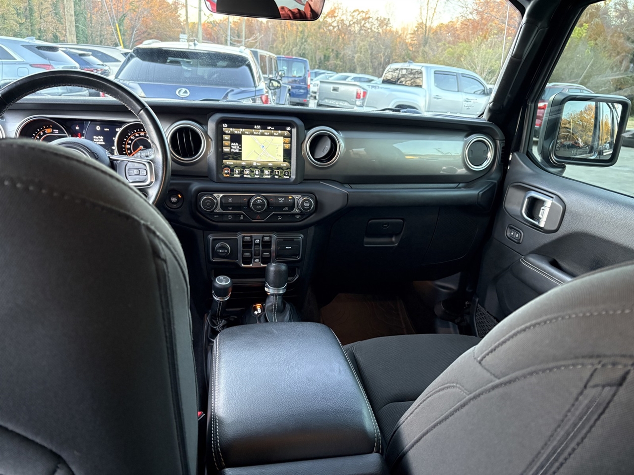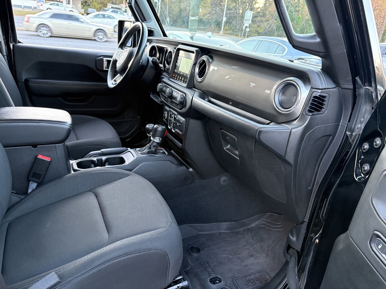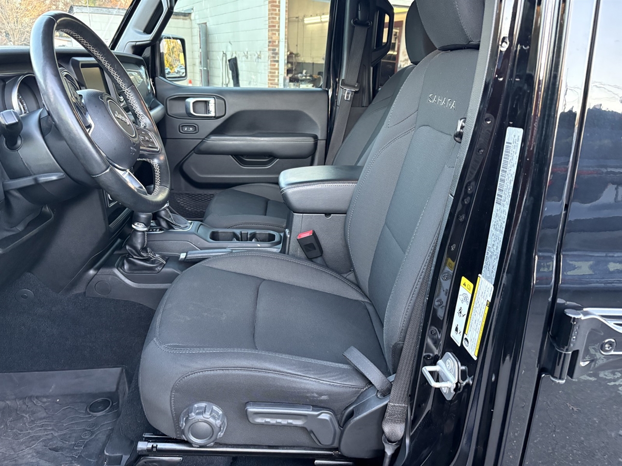Climb into the spacious Sahara cabin and enjoy features that keep you comfortable even when the going gets rough, starting with premium cloth seats, a multifunction steering wheel, remote keyless entry, and push-button start. You can also stay connected as you explore thanks to the full-color navigation, Android Auto®, Apple CarPlay®, and Bluetooth®, all supported by a 7-inch touchscreen, Uconnect® voice command, and an eight-speaker audio system with available satellite radio.